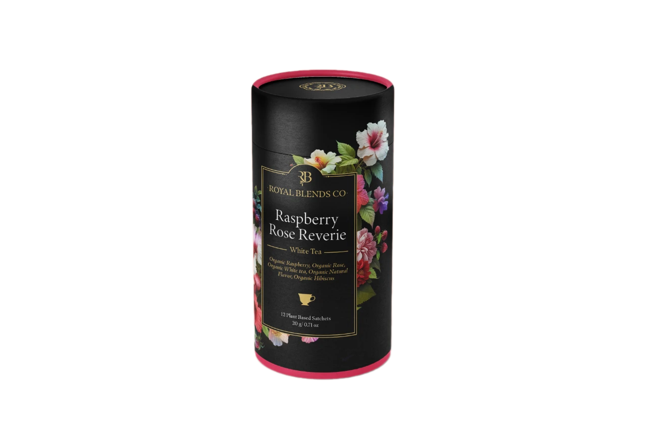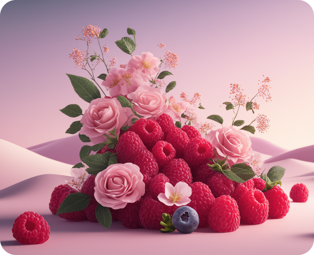 A fragrant fusion of tart raspberries and delicate rose petals, offering a soothing, floral sweetness.